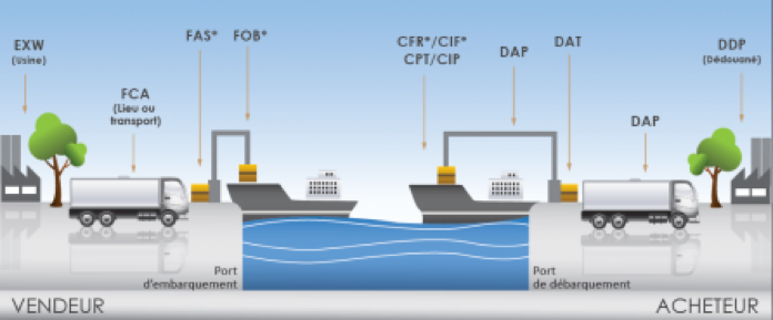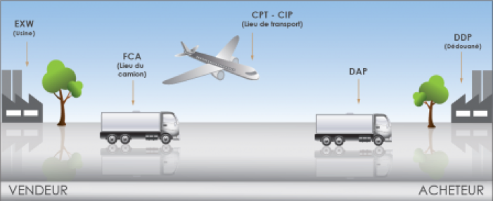 Le vendeur a l’obligation de mettre à disposition la marchandise au point nommé (lieu de destination = après le transport principale).