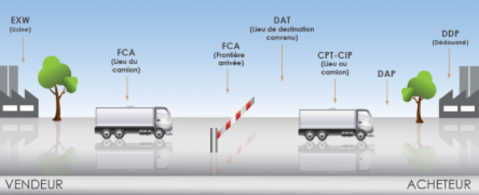 Le vendeur a l’obligation de mettre à disposition la marchandise au point nommé (lieu de destination = après le transport principale). Avec l’obligation d’ASSURER la marchandise contre les pertes et avaries durant l’acheminement.