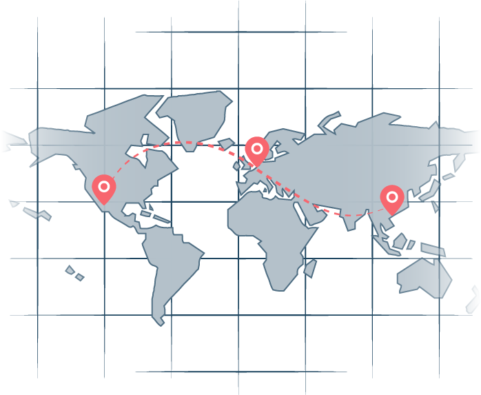 Chargement (1) + pré acheminement (2) + Douane export (3) + transit au départ (4) + transport principal (5) + (Assurance (6)) + transit à l’arrivée (7)